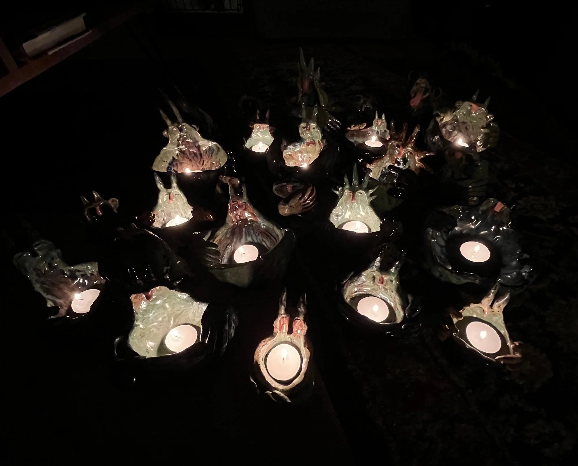 In 2024 I started doing ceramics and fell in love with making little creatures. I call them Yondermen. Enjoy